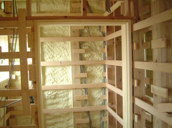 音は、空気と固体の震動により伝わります。つまり、その部屋の隙間が少なく、天井や床や壁の比重が大きければ大きいほど、音は伝わりにくくなります。カラオケルームの防音性能を高めるために、入口ドアを気密用パッキン付きの重いものにしたり、天井や壁下地を石膏ボードを二重張り、または鉛の板を貼ったりするのは、